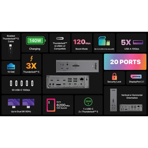 TS5 Plus - Thunderbolt 5 Dock incl 1m braided TB5 Cable & 330W PSU – Space Grey Read more Read less