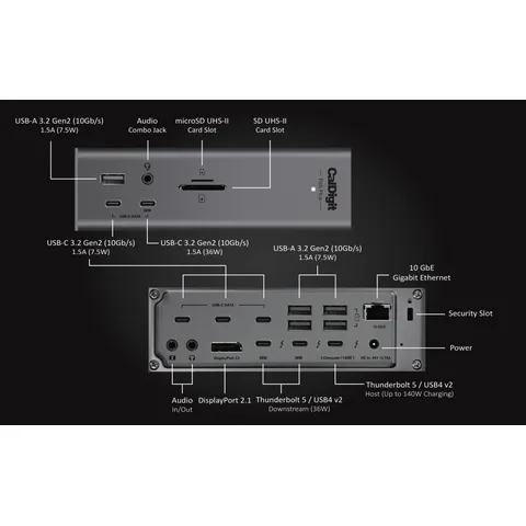 CalDigit TS5 Plus - Thunderbolt 5 Dock incl 1m braided TB5 Cable & 330W PSU – Space Grey
