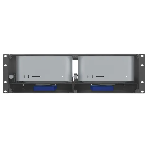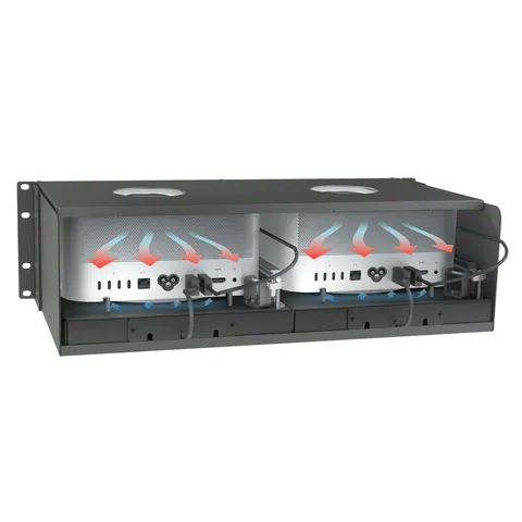 Supports direct airflow through each Mac Studio to keep it operating as cool in rack as on the desk, even when the enclosure is mounted between two other rackmounted components.