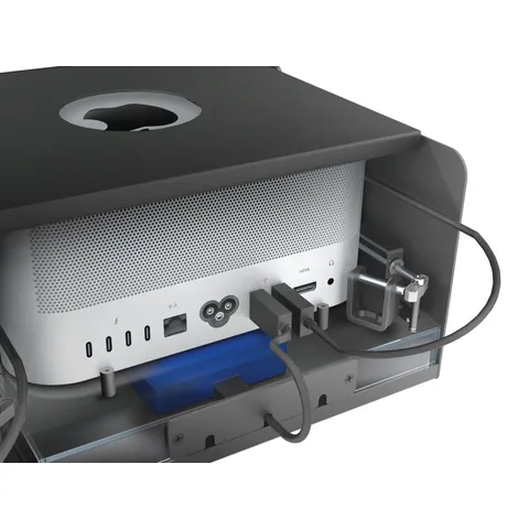 Secures one or two Mac Studio computers inside a compact and rugged steel enclosure.